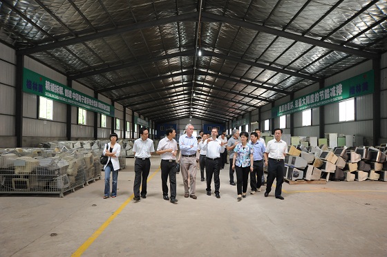圖五 伯納德.??怂瓜壬ㄇ白笠唬⒃S開華董事長(前右二)等參觀武漢陽邏電子廢棄物循環產業園