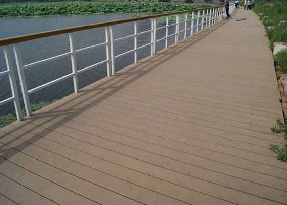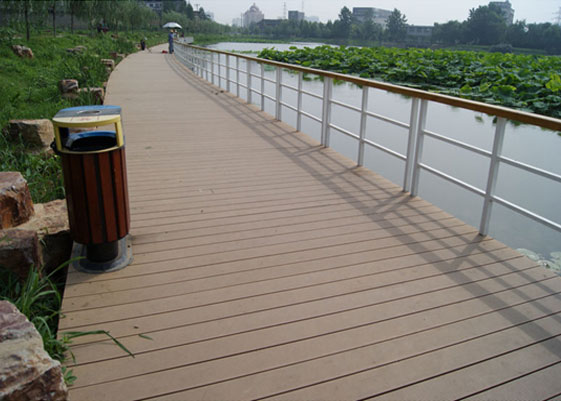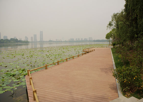 武漢東湖南大門(mén)人行塑木棧道全長(zhǎng)200多米,塑木使用的面積約為1400平米。格林美塑木型材產(chǎn)品具有優(yōu)良的防腐、防水、防裂、防霉、抗蟲(chóng)蛀和抗污性能,擁有自然的木質(zhì)紋理,防滑舒適的表面,更具備超強(qiáng)的承壓能力,使市民進(jìn)出更加安全和悠閑。